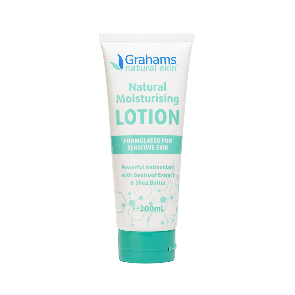 Grahams Natural Moisturising Lotion Restores the skins moisture balance by deeply nourishing to help soothe dry skin. Enriched with an infusion of Shea Butter, Sunflower seed oil and Beetroot extract to hydrate thirsty skin and improve skin elasticity. Especially forumulated for those with eczema, psoriasis and dermatitis.