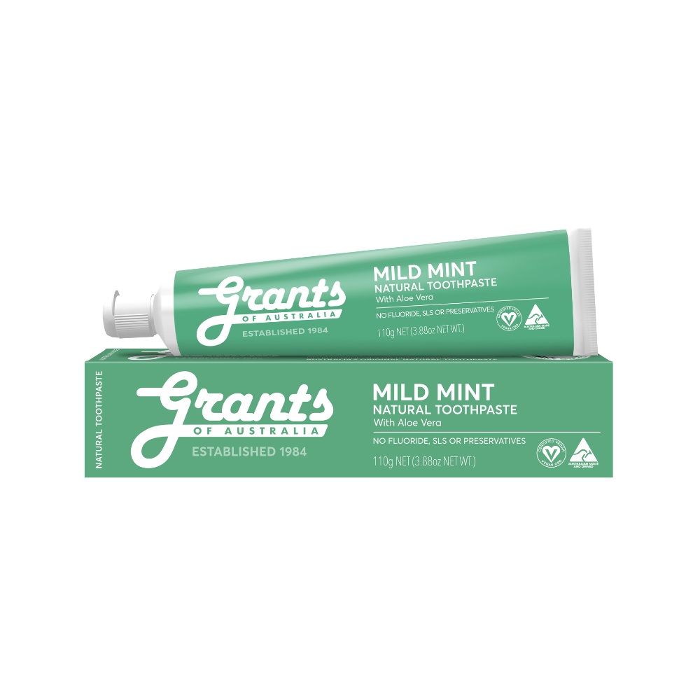 Grants of Australia Mild Mint Natural Toothpaste - Fluoride Free - 110g