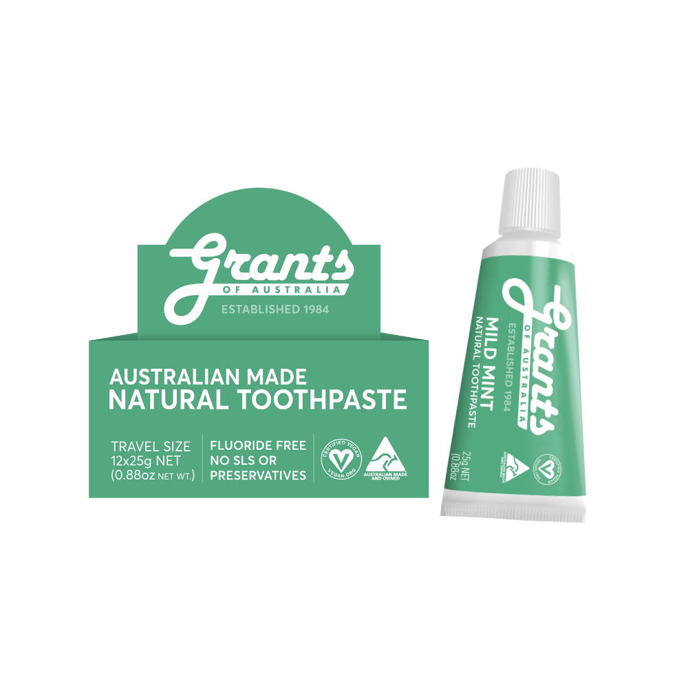 Grants of Australia Mild Mint Natural Toothpaste - Fluoride Free - Travel Size - 25g