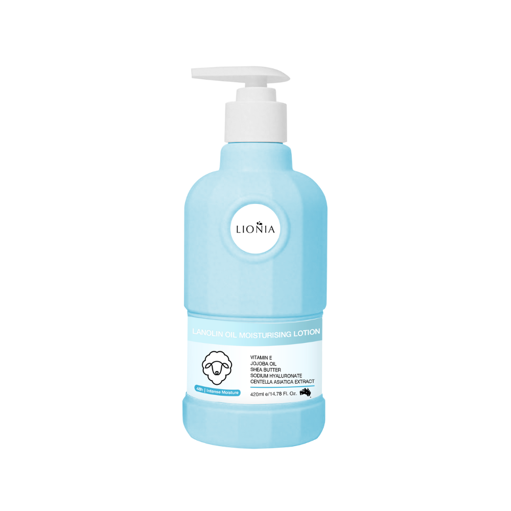 LIONIA Lanolin Oil Moisturising Body Lotion is made with premium lanolin from Australian farms, blended with centella extract and jojoba oil to soothe and hydrate dry, sensitive skin. The lightweight, non-greasy texture absorbs easily, relieving tightness and leaving skin soft for up to 48 hours. Traditional lanolin refining methods preserve its natural moisture-locking ability, while vitamin E and plant oils help support your skin’s protective barrier. It’s suitable for everyday use all over the body — perfect for all skin types, all year round.