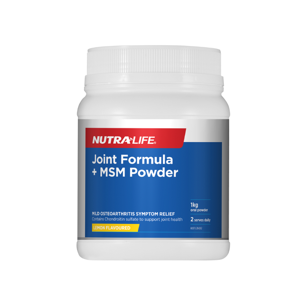 Nutra-Life Joint Formula + MSM is a lemon flavoured powder used for mild osteoarthritis symptom relief