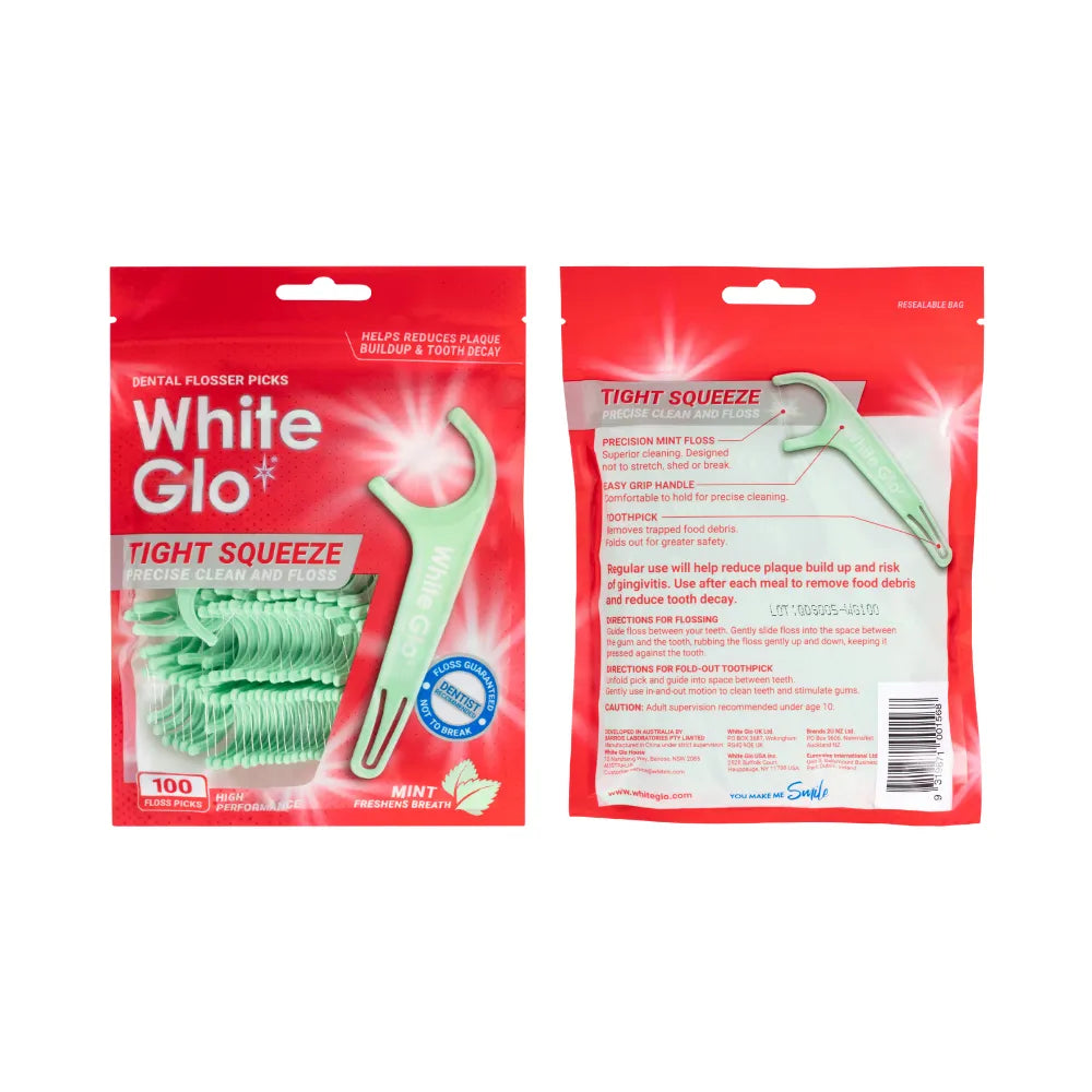White Glo Dental Flosser Picks Tight Squeeze Precise Clean and Floss 100 Flosser Picks